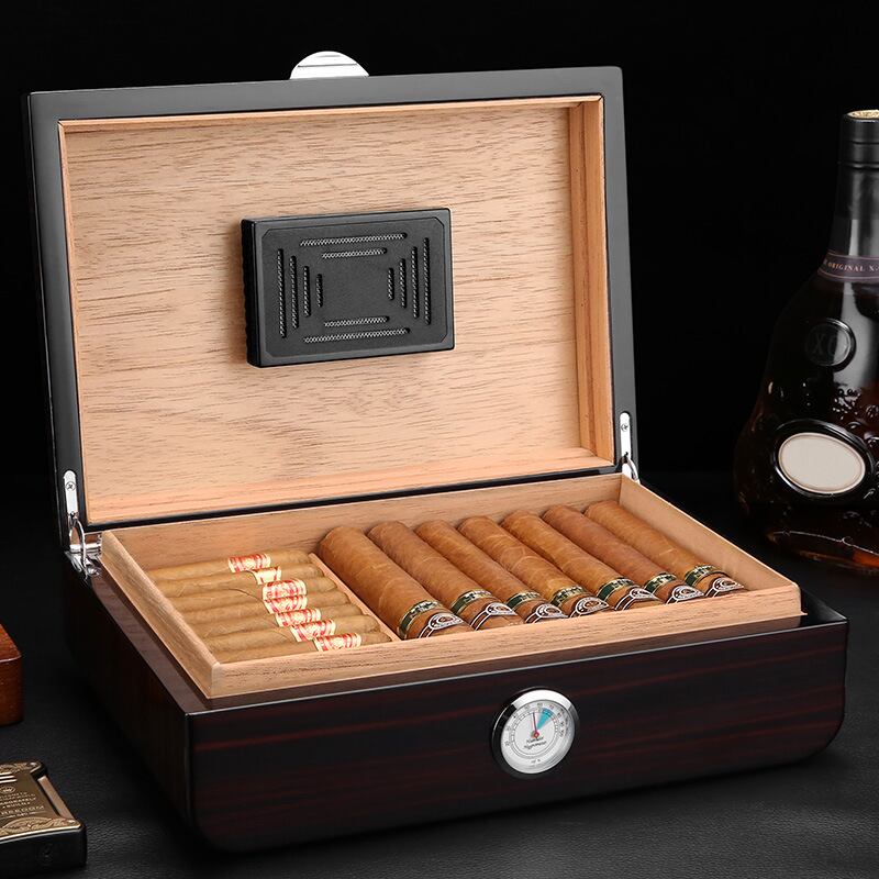 湿度計付きヴィンテージシガーハイド、48シダーウッドシガー用に設計、光沢のあるピアノペイント仕上げ、シガーは含まれていません