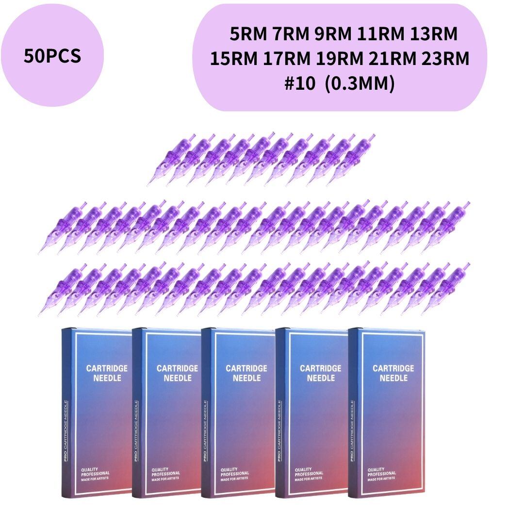 タトゥーアーティストのためのろ過安全を備えた使い捨てタトゥー針、ラウンド拡大鏡、1005 7 9 11 13 15 17 19 21 23rm、50個