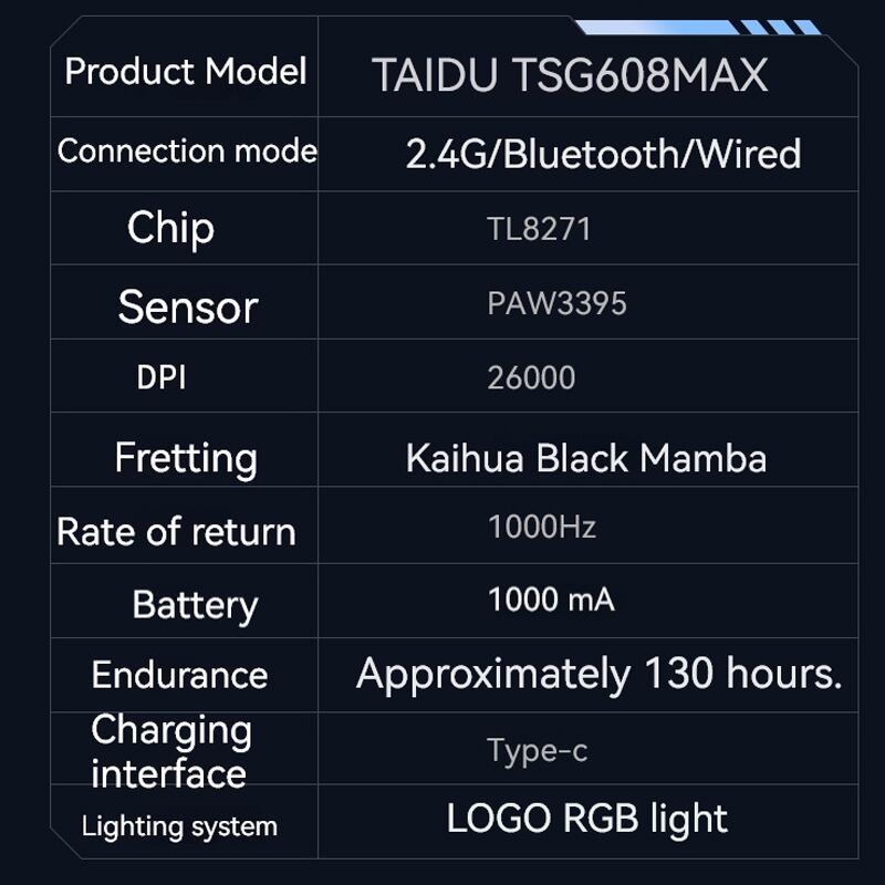 人間工学に基づいた設計で、軽量かつ高品質なTaidu-Tsg608x2.4パワフルなマウスが登場!PCゲーマーに最適な3つのモードを搭載し、ワイヤレス操作を可能にします。ワイヤレス、Bluetooth、有線、どんな環境でもスムーズな操作が実現します。さらに、26000DPIの高性能センサーと長時間バッテリーで、快適なデスクトップコンピューター体験をお届けします。デザインも洗練されたRGB照明で、モダンな空間にマッチします。ぜひ、このTaidu-Tsg608x2.4を手に入れて、ゲームや仕事の効率をアップさせましょう。Taidu-3つの有線モードを備えたTsg608マウス,2.4g,ワイヤレス,Bluetooth,人間工学に基づいたPCゲーム,軽量製品モデル:taidutsg608max接続方法:2.4g/bluetooth/wiredチップ:tl8271センサー:paw3395Dpi:26000マイクロモーション:カイワブラックマンバ返品レート:1000hzバッテリー:1000mah範囲:約130時間充電インターフェイス:type-c照明システム:RGBロゴ照明製品モデル:taidutsg608pro接続方法:2.4g/bluetooth/wiredセンサー:PMW3325DB-TWMUアクセラレーション:20gスピード:100ipsDpi:800/1200/1600/3200/5000照明システム:RGB照明返品レート:125/250/500/1000hzボタンの数:7充電インターフェイス:type-cスペシャル:下収納コンパートメント線の長さ:1.8m製品モデル:tsg608s動作モード:2.4gワイヤレスボタンの数:6センサー:オリジナルフェーズゲームチップアクセラレーション:20gスピード:100ips充電インターフェイス:type-c製品サイズ:約65x120x40mmwindow.adminAccountId=2675665416;
