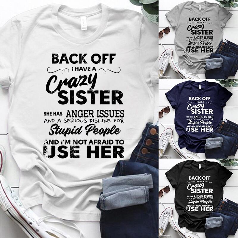 女性のカジュアルな半袖Tシャツ、ラウンドネックのトップス、背中の開いた、クレイジー姉妹、夏のTシャツ、女性、かわいい
