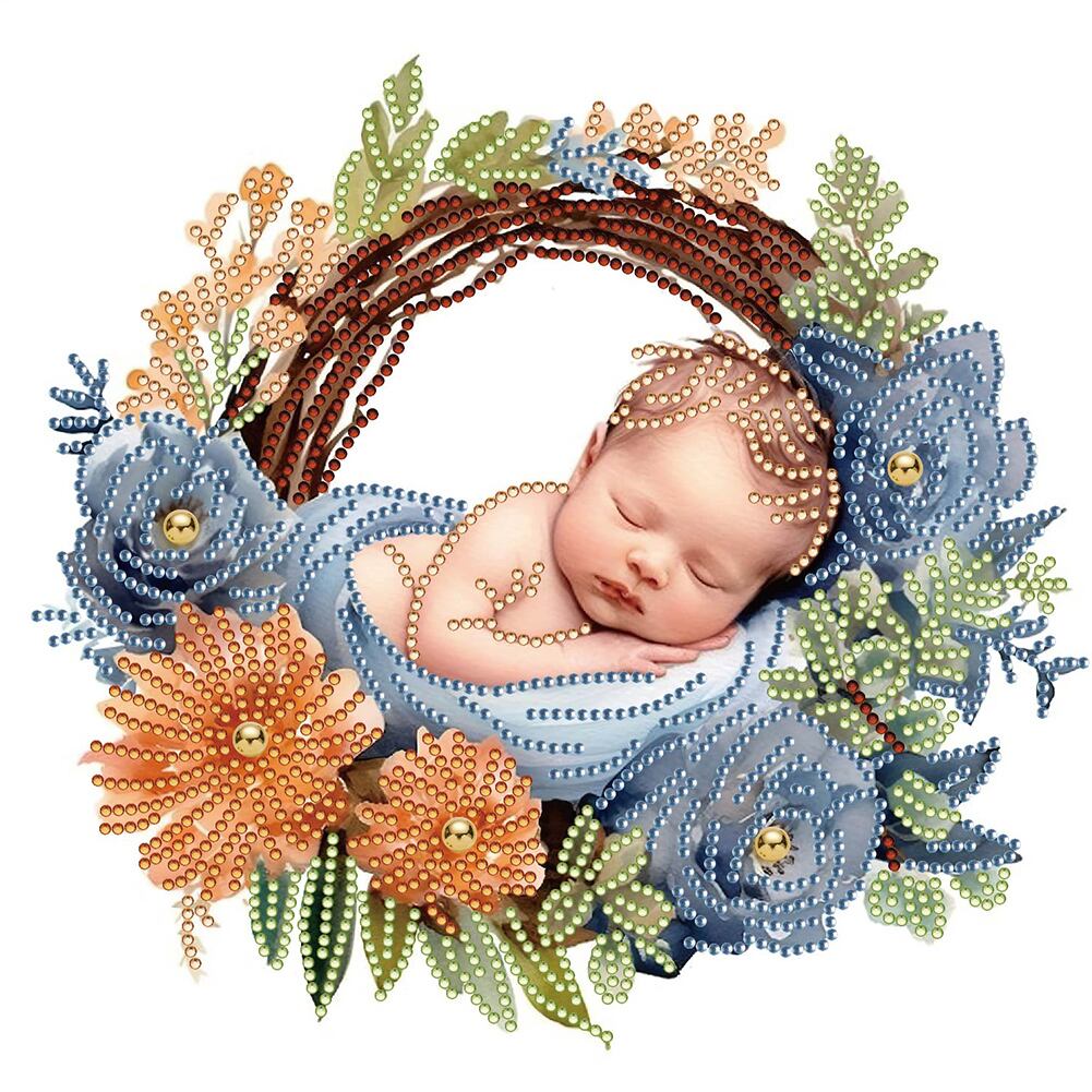 5d部分的な特別な形のドリルダイヤモンド絵画、赤ちゃんの花輪、DIY、30x30cm