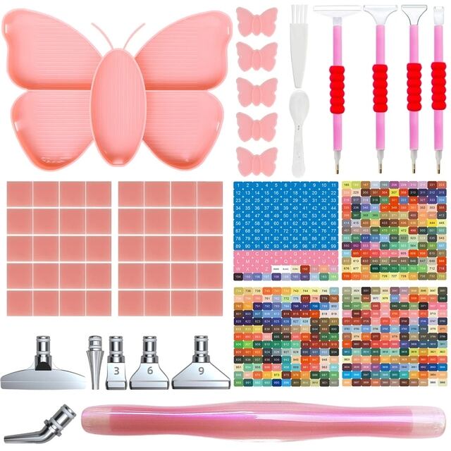 ダイヤモンドペイント用プラスチックバタフライトレイ、金属チップペン、樹脂スタイラス、接着剤刺embroidery、楽しい工芸品アクセサリー、DIY