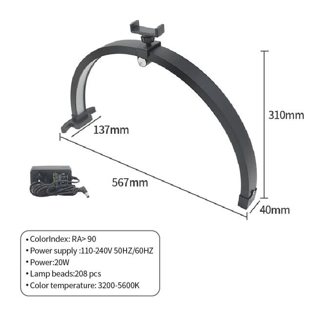 最高品質のLED芯を搭載した、半月形のネイルデスクランプ。高い明るさと視力保護に配慮し、柔らかな光で肌をクリアに照らします。さらに、3色の色温度調節機能で、さまざまなニーズに最適な照明を提供します。ビューティーサロンやネイルサロンはもちろん、スキンケアやエステサロンでも活躍します。簡単な設置で、美しく快適な照明環境をお楽しみいただけます。仕様Name:デスクトップ折りたたみ式ランプライト色:黒/白サイズ:照明56cm/22インチランプビーズ:208出力電圧:110v/240v50hz/60hzパワー:20w明るさ調節可能:0%-100%色温度:3200k-5600kカラーレンダリングra>90ルーメン値:1500lm説明高品質素材:半月形の光はアルミニウム合金シェルで作られており、表面にベーキングペイントが施されています。