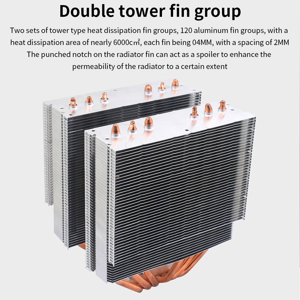 Cpu用TISHRIC-RGBエアクーラー、ファンヒートシンク、6ヒートパイプ、4ピン、lga 1700、1200、775、115x、2011、x79
