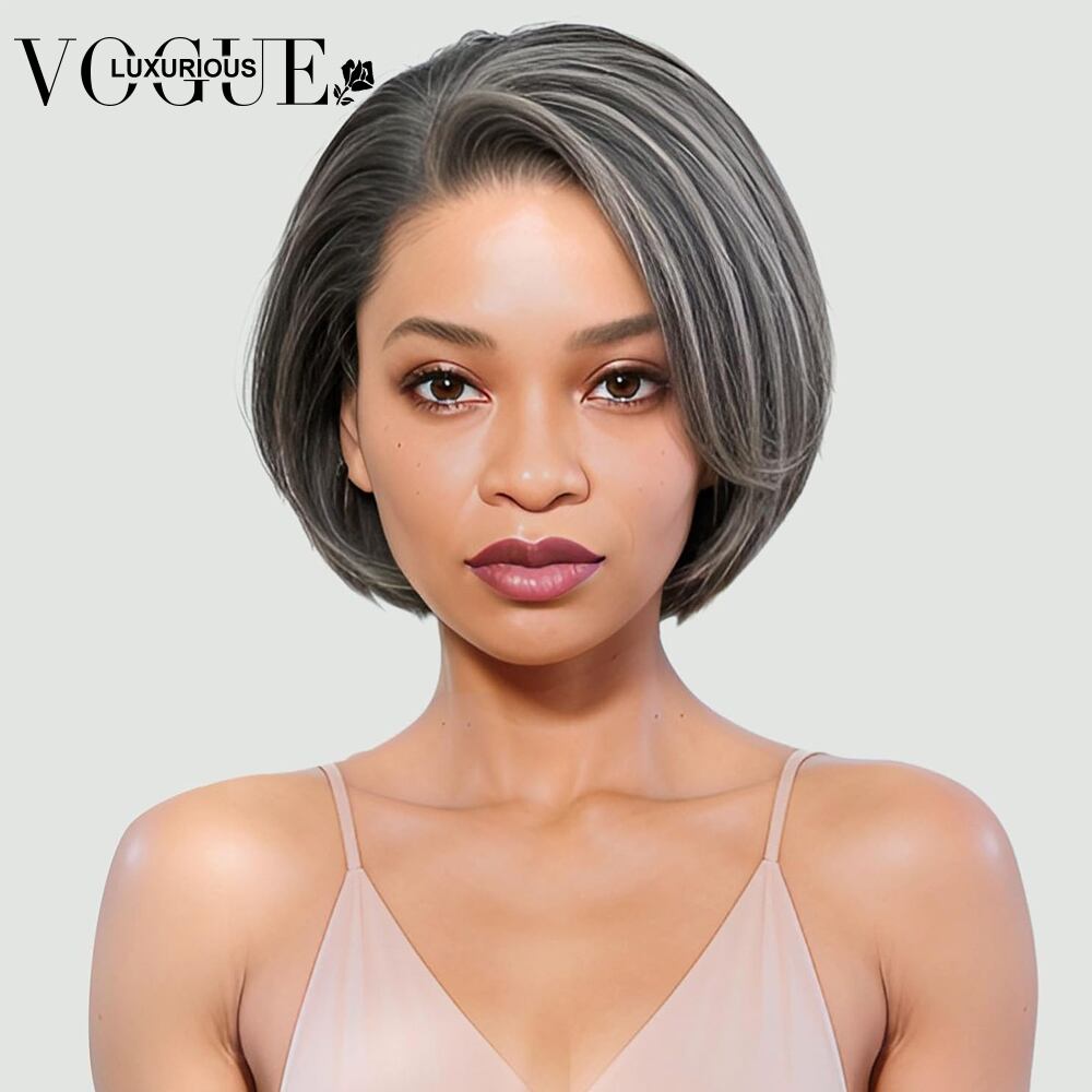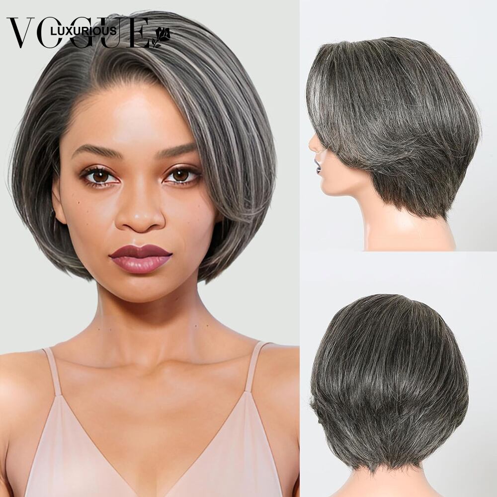 ストレートヒューマンヘアウィッグ、ショートボブ、ピクシーカット、強調塩、グルーレスブラジアンウィッグプレプル、4x4、5 x5クロージャーレース
