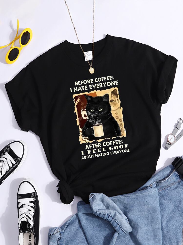 女性のためのすべてのコーヒーが付いている前に,誰もがいるために,柔らかくシックなTシャツ,毎日のブランド