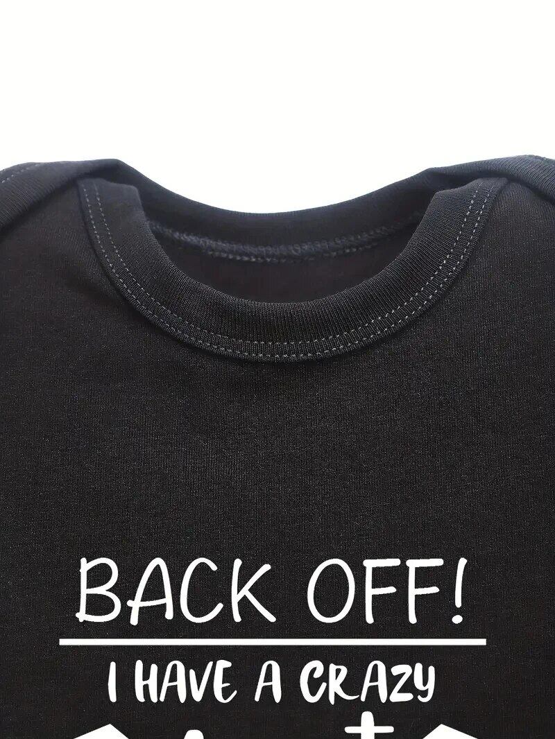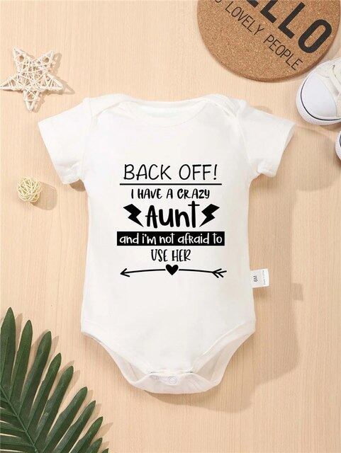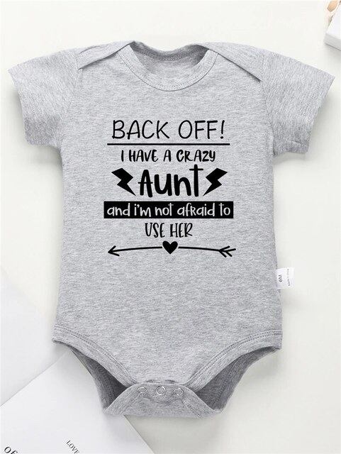 トレンディな「BackOffIHaveaCrazyAunt」のデザインで、おしゃれな一着です。赤ちゃんの快適さを保証する柔らかく通気性のあるコットン素材で作られており、男の子も女の子もおしゃれに着こなせるユニセックススタイルです。