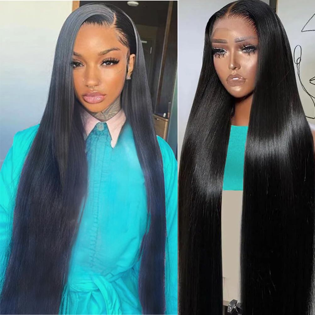 女性用レースフロントウィッグ,HDレースフロントウィッグ,事前に抜いた,ベビーヘア,人間の髪の毛,密度150%,1b,13x4