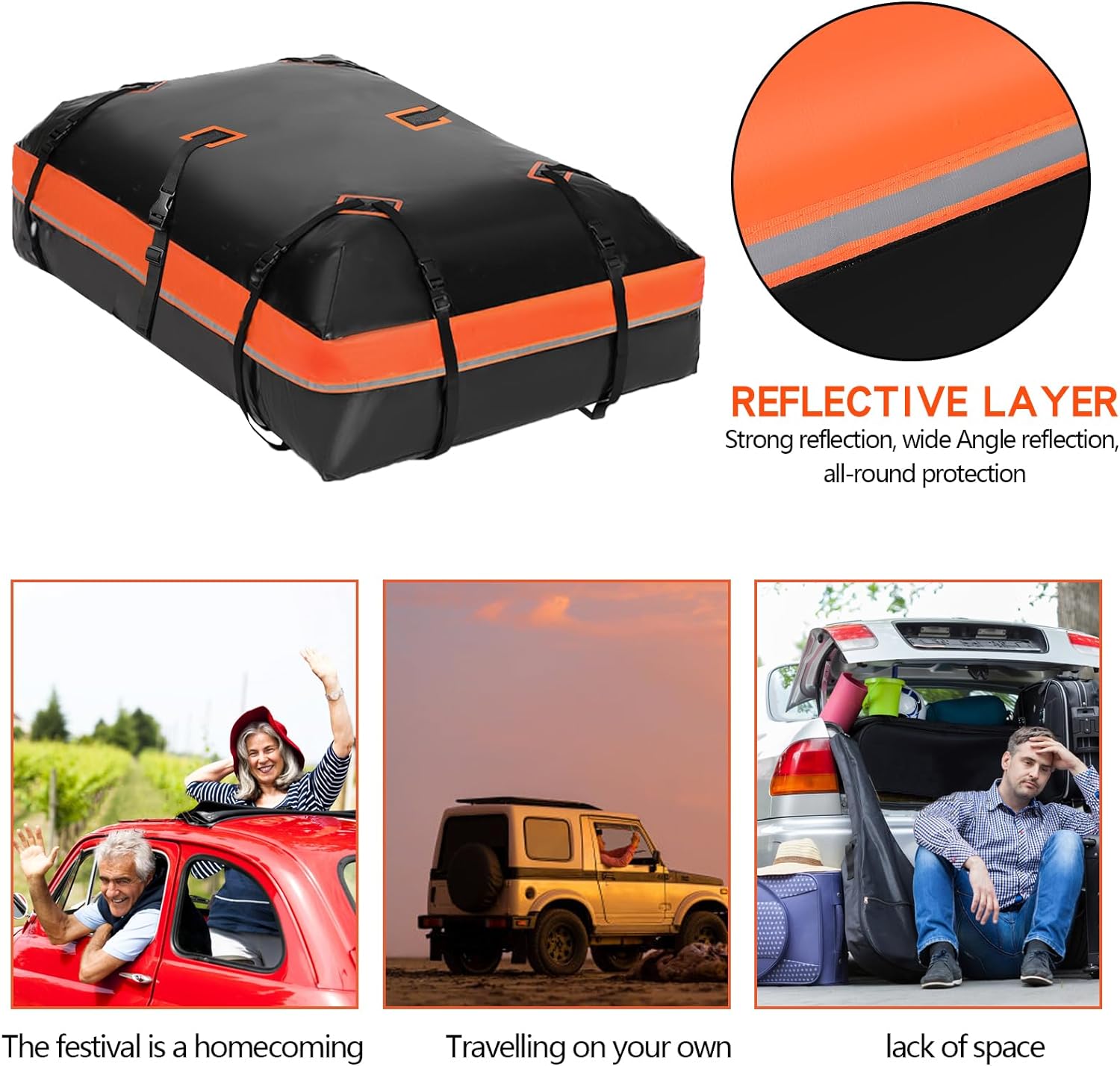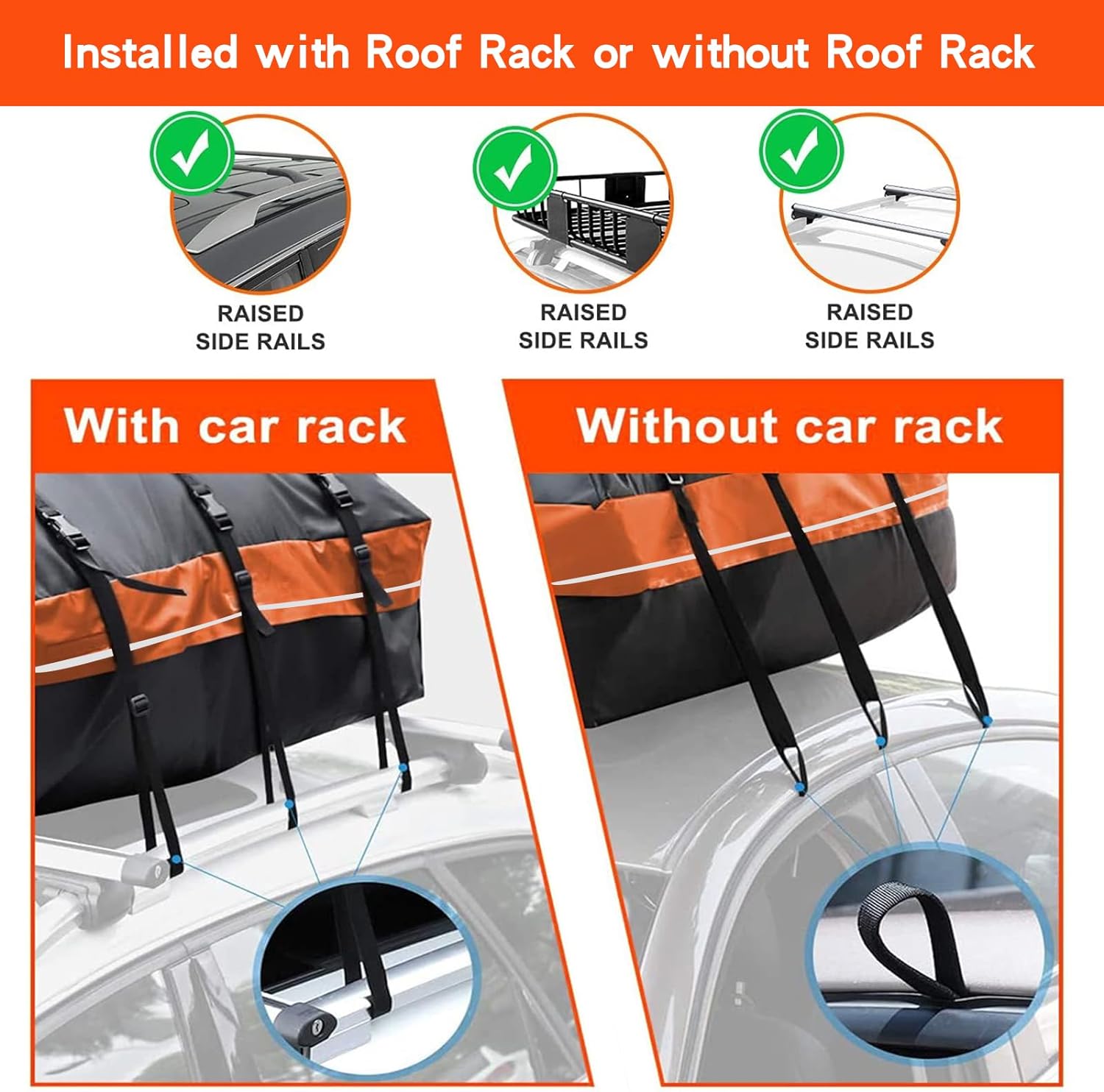 【ユニバーサル互換性】カールーフバッグは、あらゆるサイズの車やSUVに使用でき、ルーフラックの有無にかかわらず車に使用できます。