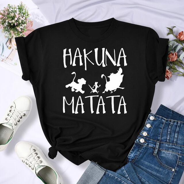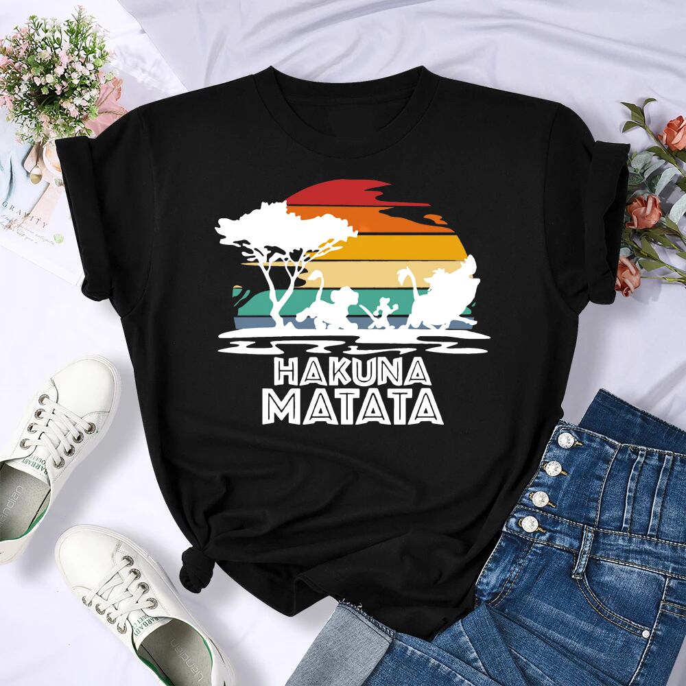 女性のためのライオンキングのデザインが施された面白いTシャツ,面白いライオンキングの漫画のキャラクターがプリントされた原宿のカジュアルなTシャツ