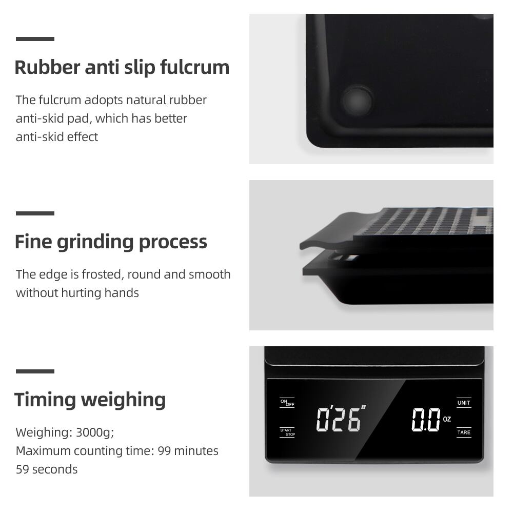 タイマー付き多機能デジタルコーヒースケール,液晶ディスプレイ,ドリップ防止,キッチンツール,3kg, 0.1g