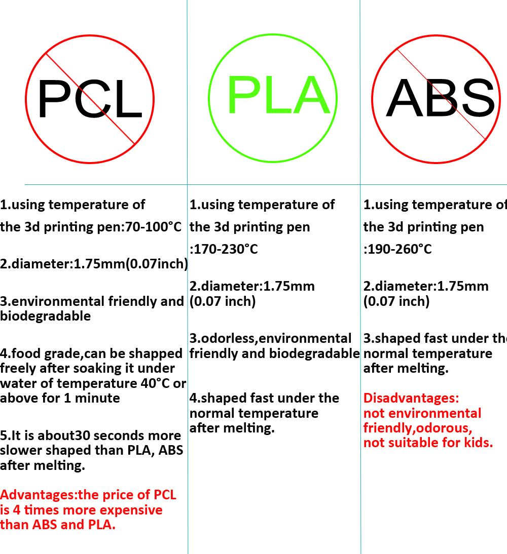 プラフィラメント動作温度は180°〜230°、pclフィラメント動作温度は40℃以下ですので、正しいものを選択してください3Dペン用フィラメント,ありがとうございます!消耗品の素材は腹筋ではなくプラです。