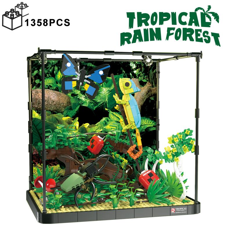 子供のための熱帯雨林のビルディングブロック、バタフライ、カメレオン、クリエイティブコレクション、建設レンガのおもちゃ、ギフト、1358個