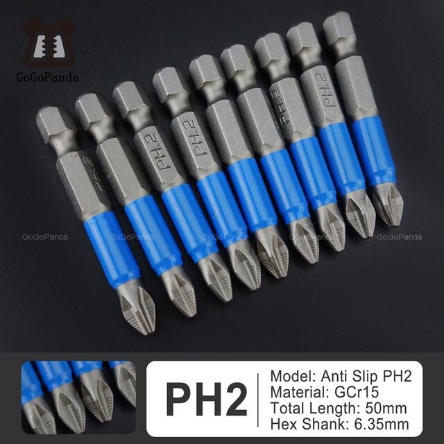 送料無料 10 個Gcr15 フィリップスビット六角shankedアンチスリップドライバービット磁気シングルヘッドPH1/PH2/PH3 50 ミリメ