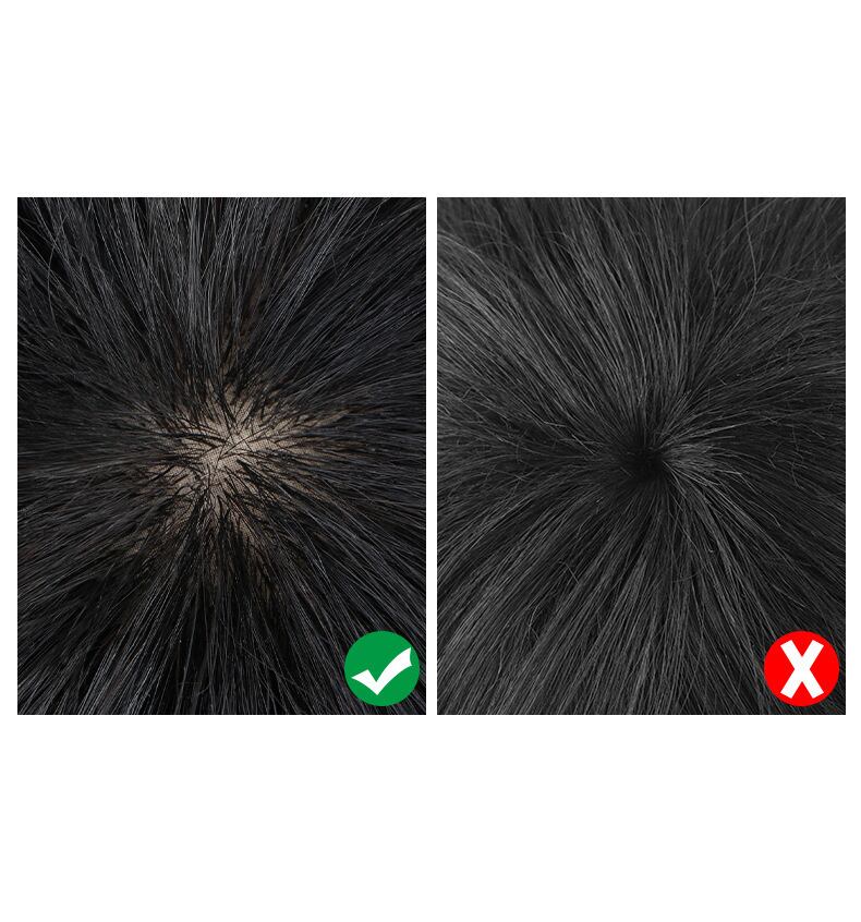 男性用のリアルなトーピー,100% 人毛,ナチュラルブラックカラー,軽量,快適なインナーネット