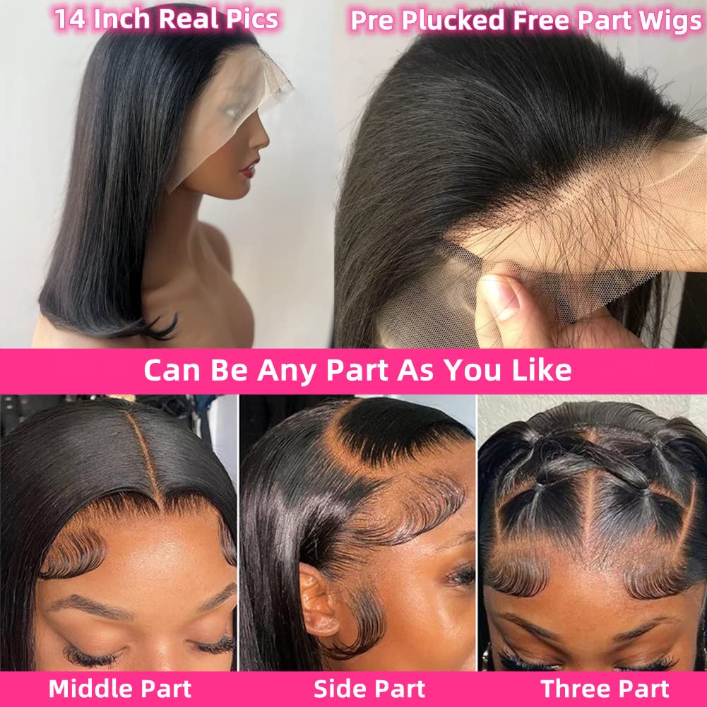 女性用ショートボブウィッグ,接着剤なしのストレートヘアピース,ナチュラルレミー,レースフロント,事前に摘み取られた,4x4, 13x4