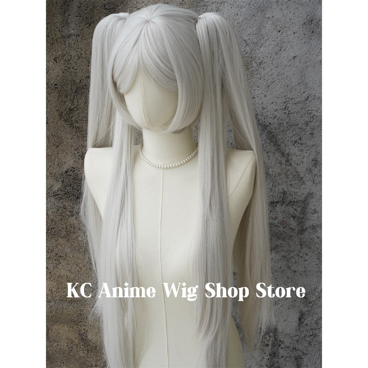 Kc-ロングポニーテールウィッグ,85cmコスプレウィッグ,シルバー,白,高温繊維,合成ウィッグ,アニメパーティーウィッグ