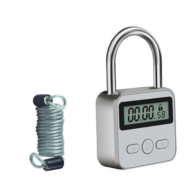[KENRONE-USB充電式タイムタイマー南京錠、コンビネーションロック、メタル、1mスプリングロープ]
