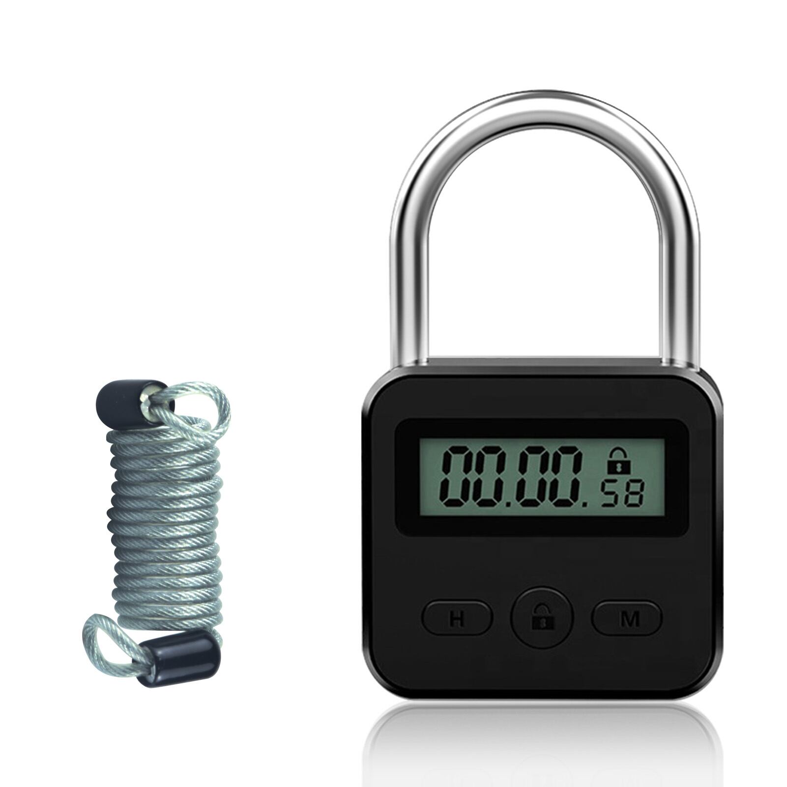 KENRONE-USB充電式タイムタイマー南京錠、コンビネーションロック、メタル、1mスプリングロープ