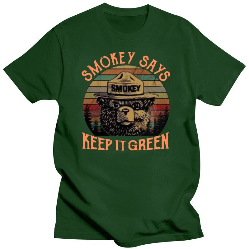 メンズスモーキーはヴィンテージの黒のクマのTシャツを言い、緑のお祝いのTシャツを保つ、S-3XL
