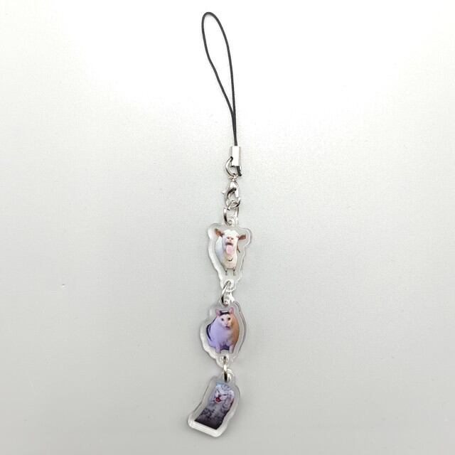 ラミブルヤギの猫の記念キーチェーン、confoscat memes、頭に足が付いたピン、友達のためのかわいいギフト