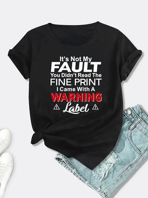 女性用半袖プリントTシャツ,カジュアルファッション,警告ラベル付きの細かいプリントを読むことはできません