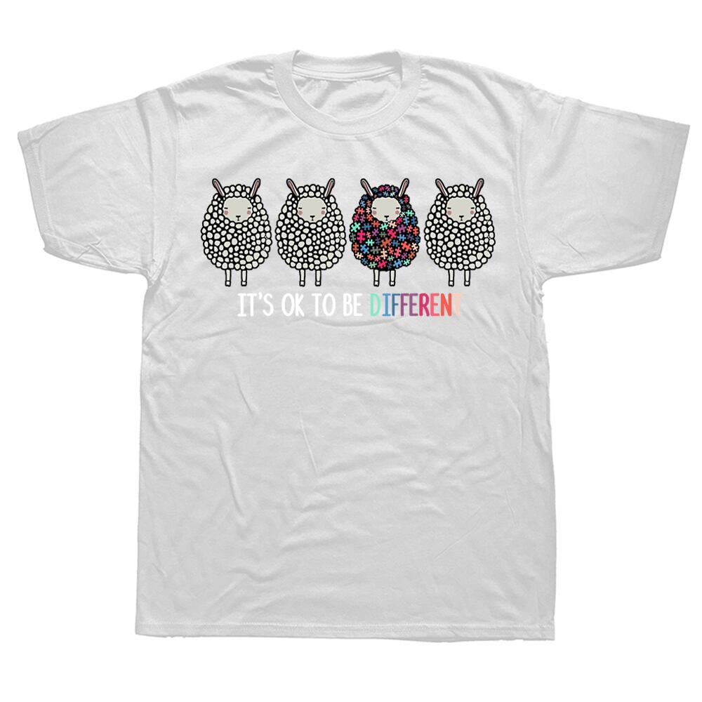 面白い羊のプリントTシャツ、自閉症の認識、夏のグラフィックストリートウェア、半袖me、大サイズ、さまざまな色