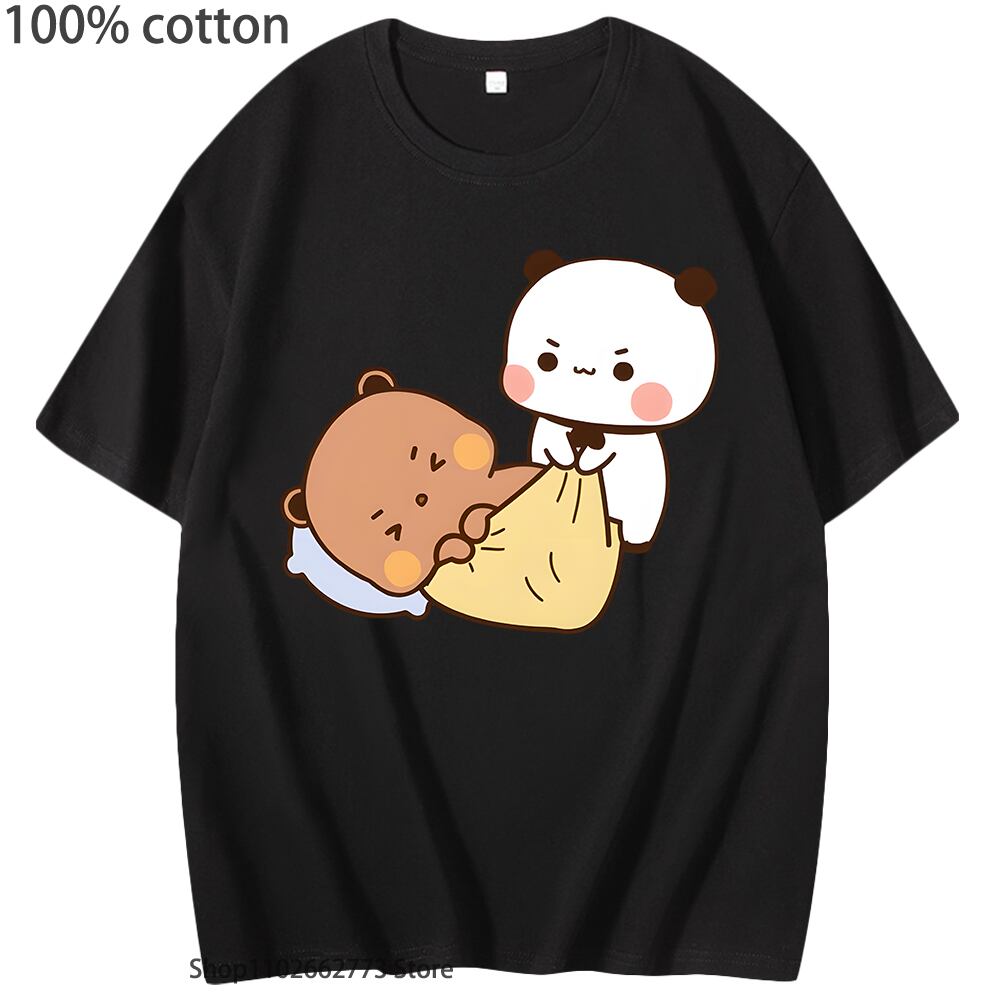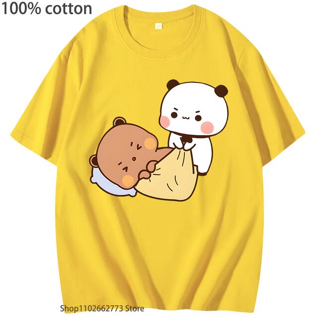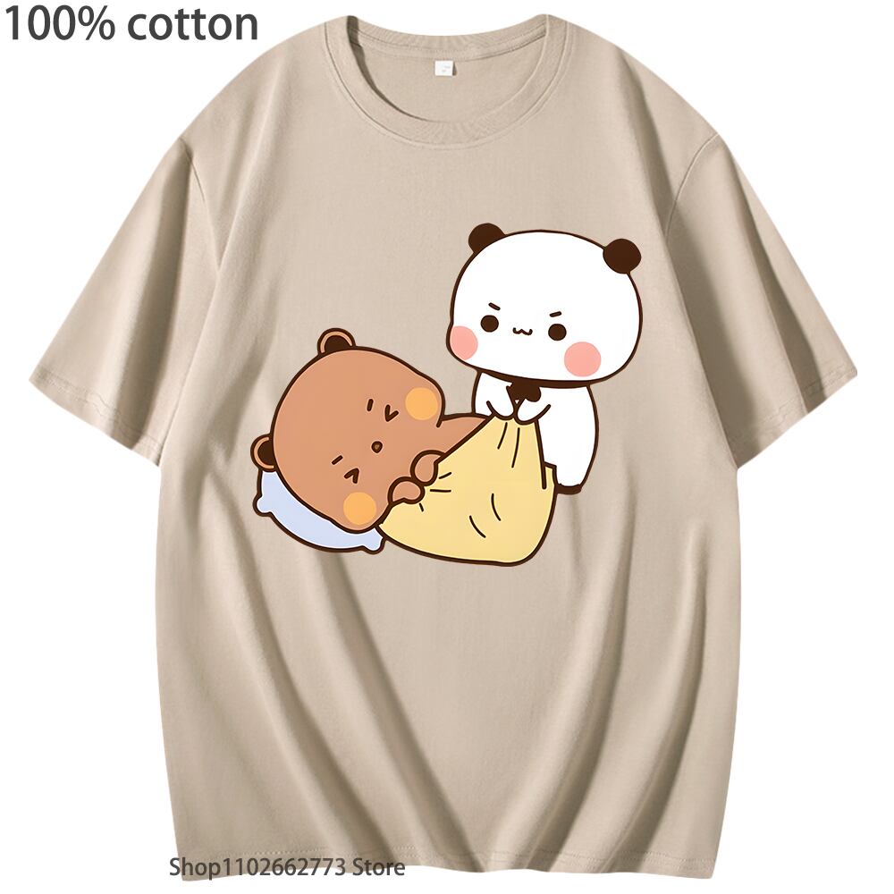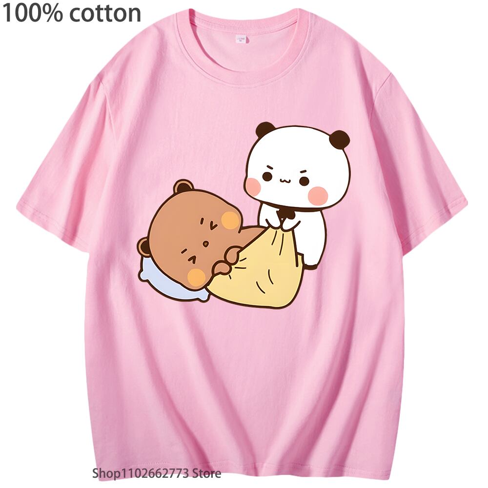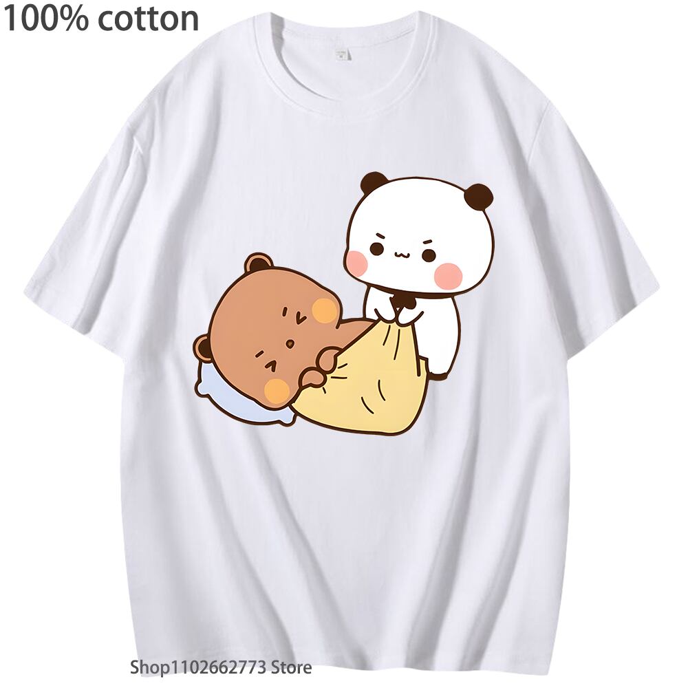 半袖コットンTシャツ,女性と男性のためのかわいいパッド入りバンダベベアシャツ,クルーネック,ショッピング,韓国スタイル,100%