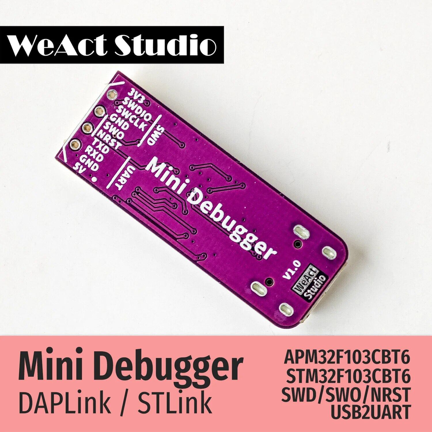「WeAct StudioのミニデバッガーStlink v2.1とDaplinkは、STM32マイクロコントローラー向けの頼れるデバッグツールです。信頼性と安定性を備え、開発をさらにスムーズに進めることができます。豊富な機能と使いやすさで、組み込みアプリケーションの開発が驚くほど簡単になります。WeAct Studioのデバッガーで、革新的なプログラミング体験を始めましょう!」WeactスタジオミニデバガーStlinkバージョンはv2.1、chipはstm32f103cbt6Daplinkチップはapm32f103cbt6です。