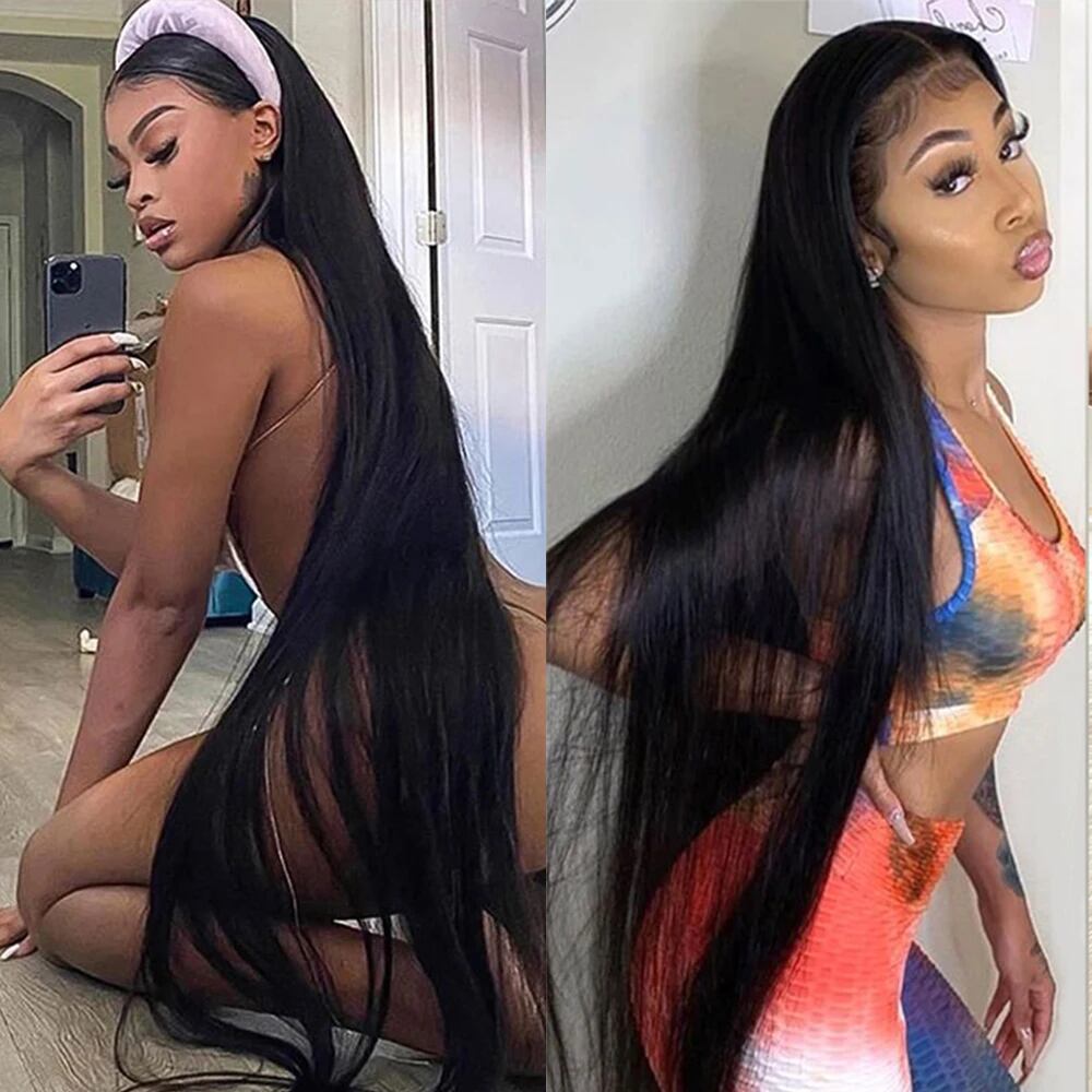 女性のための接着剤なしのストレートレースフロントウィッグ、プレカットの人間の髪の毛、自然なヘアライン、着用する準備ができています、13x4、4x4、7