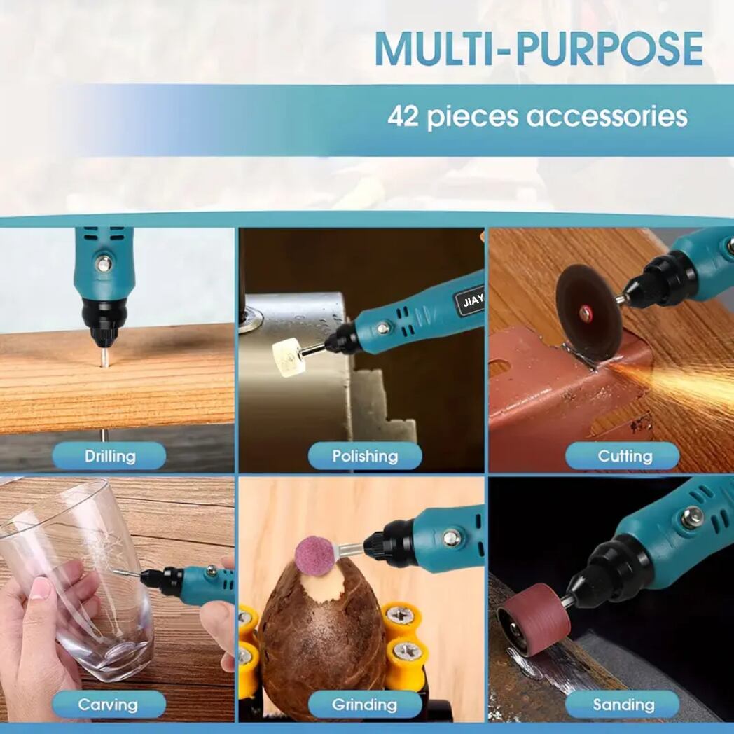 最新テクノロジー搭載!スマートでパワフルなコードレスロータリーツールキット!USBで充電可能で、使いやすさが抜群!3段階のスピード調節機能搭載で、さまざまな作業に最適です。42個の多彩なアクセサリー付きで、あらゆる場面で活躍します。さあ、手軽にDIYを楽しんでみませんか?window.adminAccountId=2675498182;