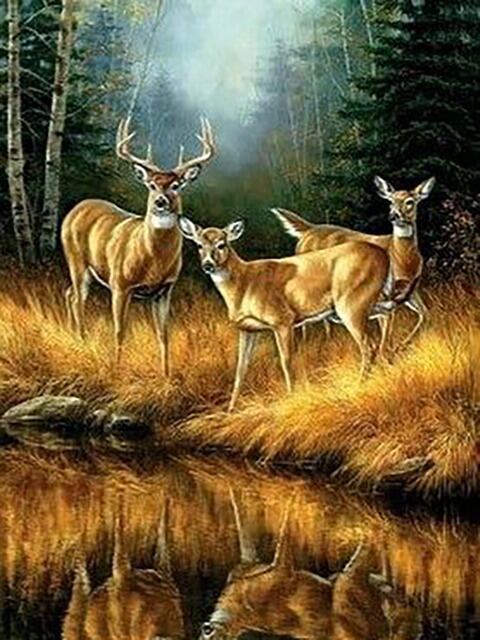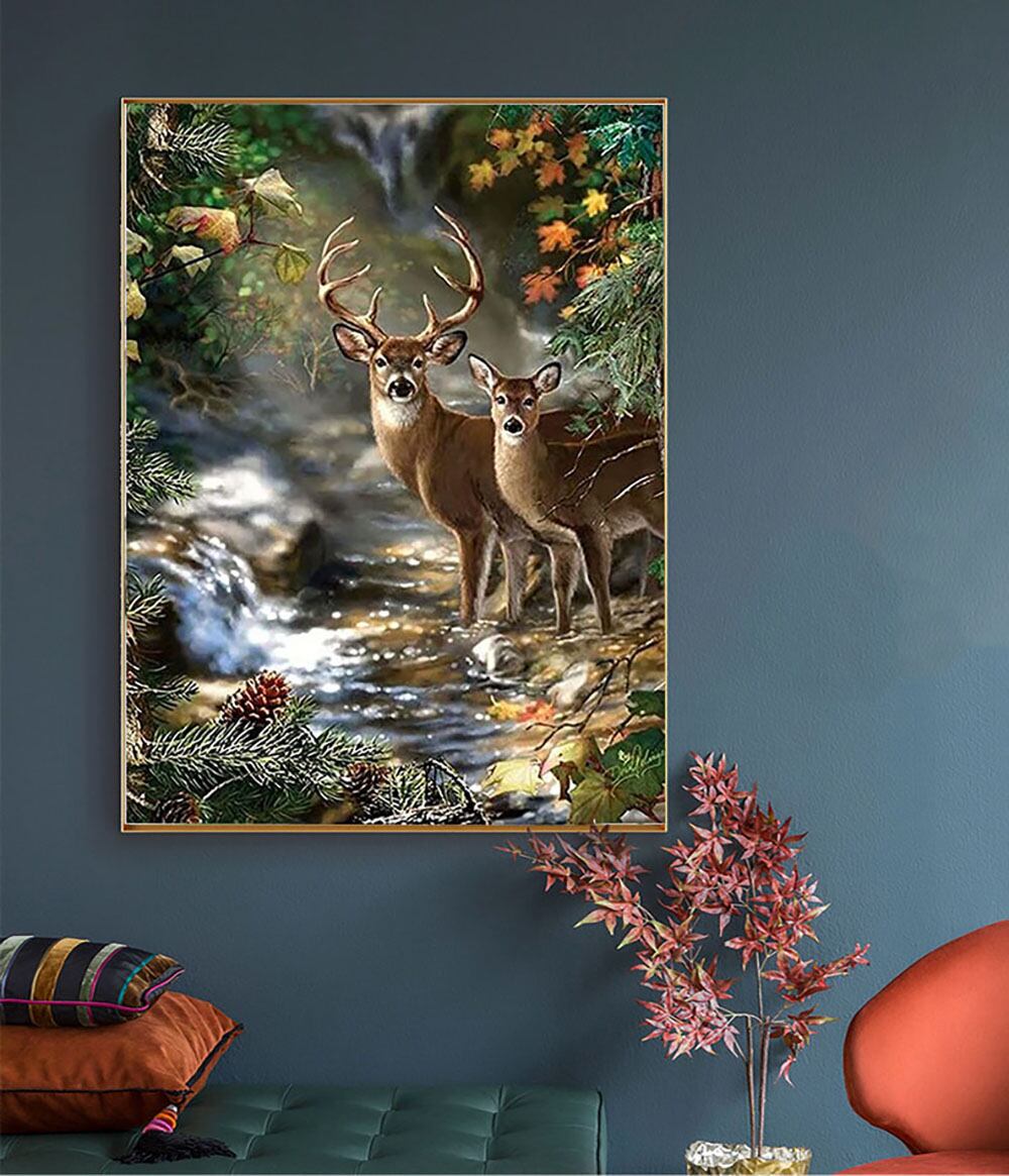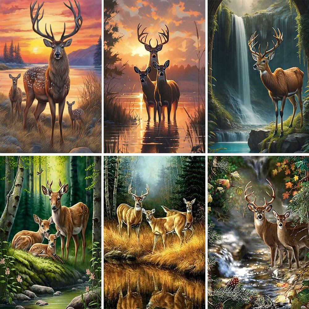カラフルな動物の5dダイヤモンド絵画、風景、鹿、滝、クロス刺embroidery、手作りのモザイクアート、家具の装飾