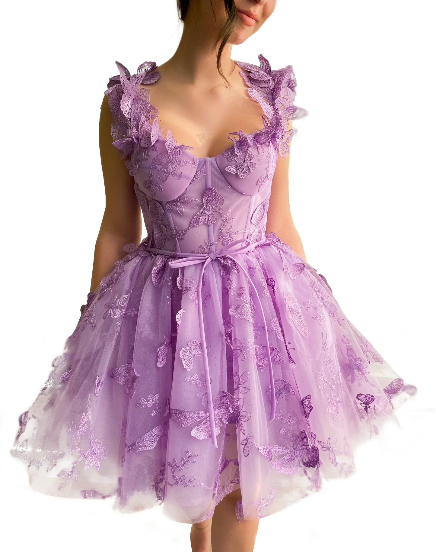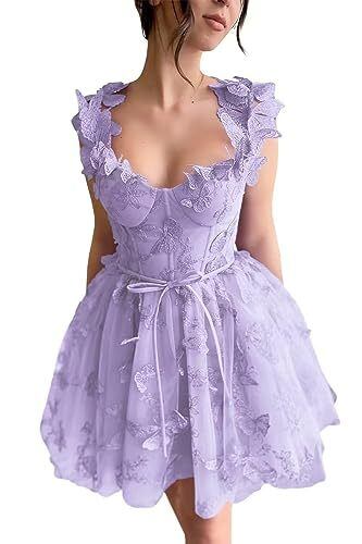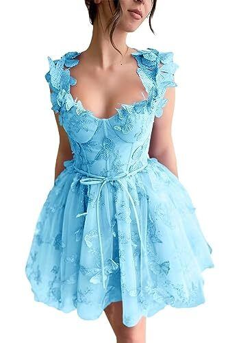 ウエディングやパーティー、クリスマスや新年、さまざまな場面で活躍すること間違いなしです。ぜひこのバタフライドレスで特別な日を彩ってください。10代の女の子のためのバタフライボールガウン,チュールとレースの短いボールガウン,結婚式,パーティー,2024機能:ミニ3Dバタフライドレスは、洗練された刺繍ストラップ、ハート型のネックライン、レースアップのバックが特徴です。