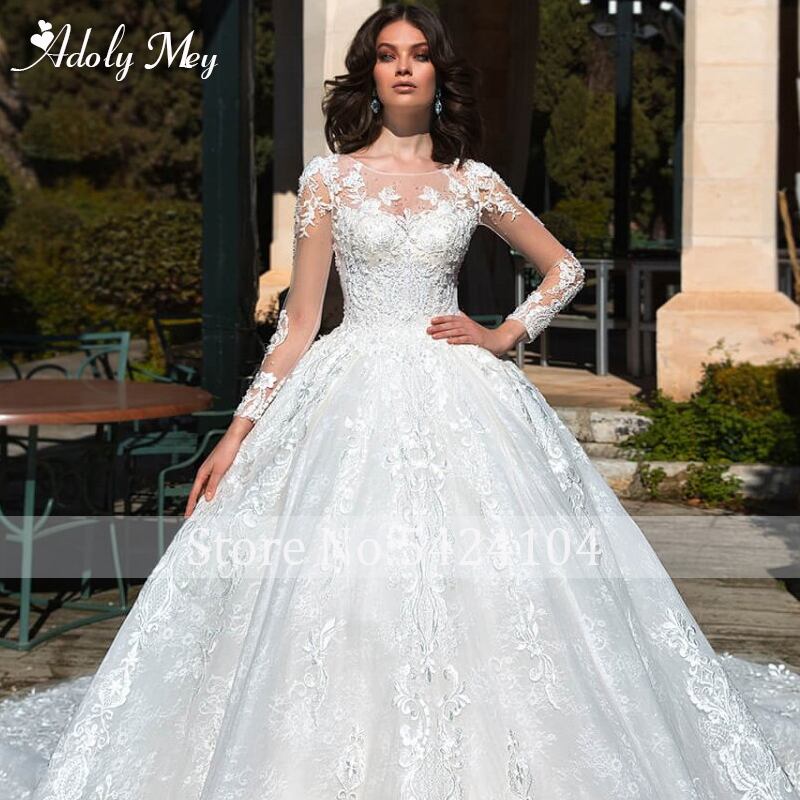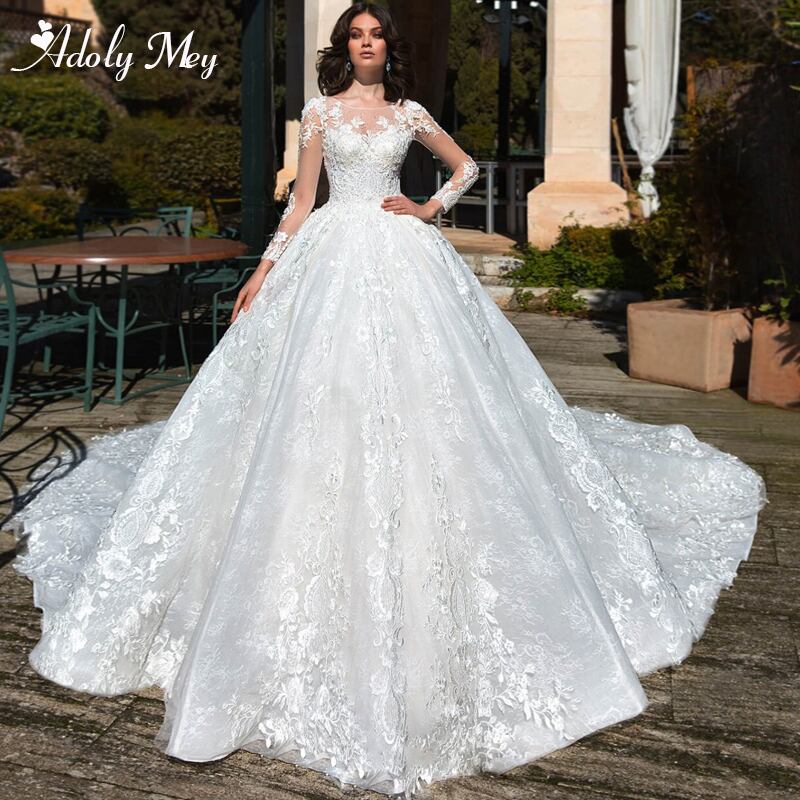 ファッショナブルなウェディングドレス,レース,アップリケ,ラウンドネック,長袖,プリンセス,2023