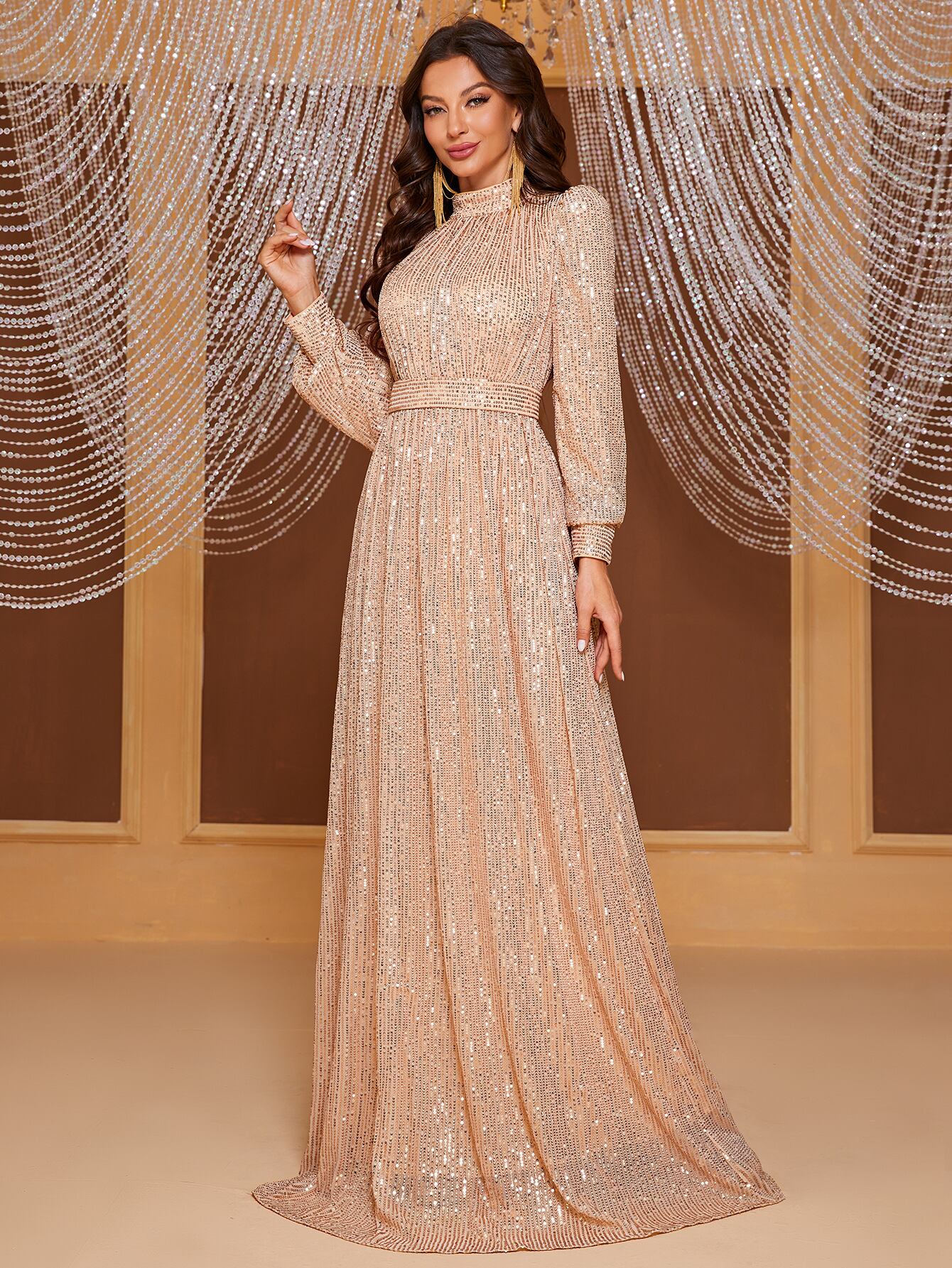Yisikado-モックネックランタンスリーブスパンコールフォーマルパーティードレス、giffestiドレス、2022