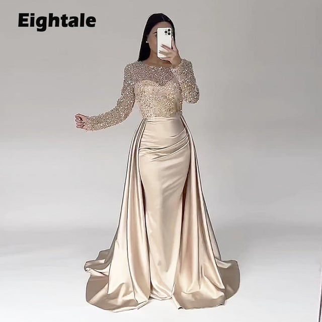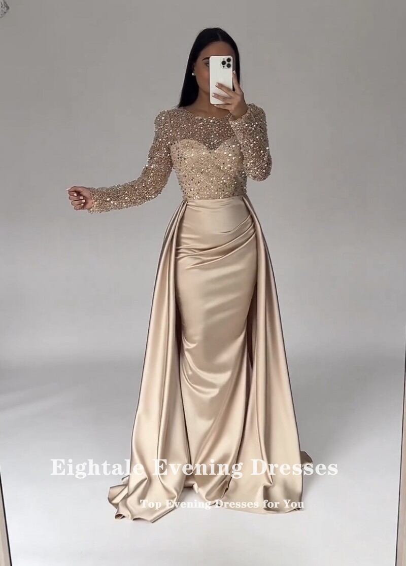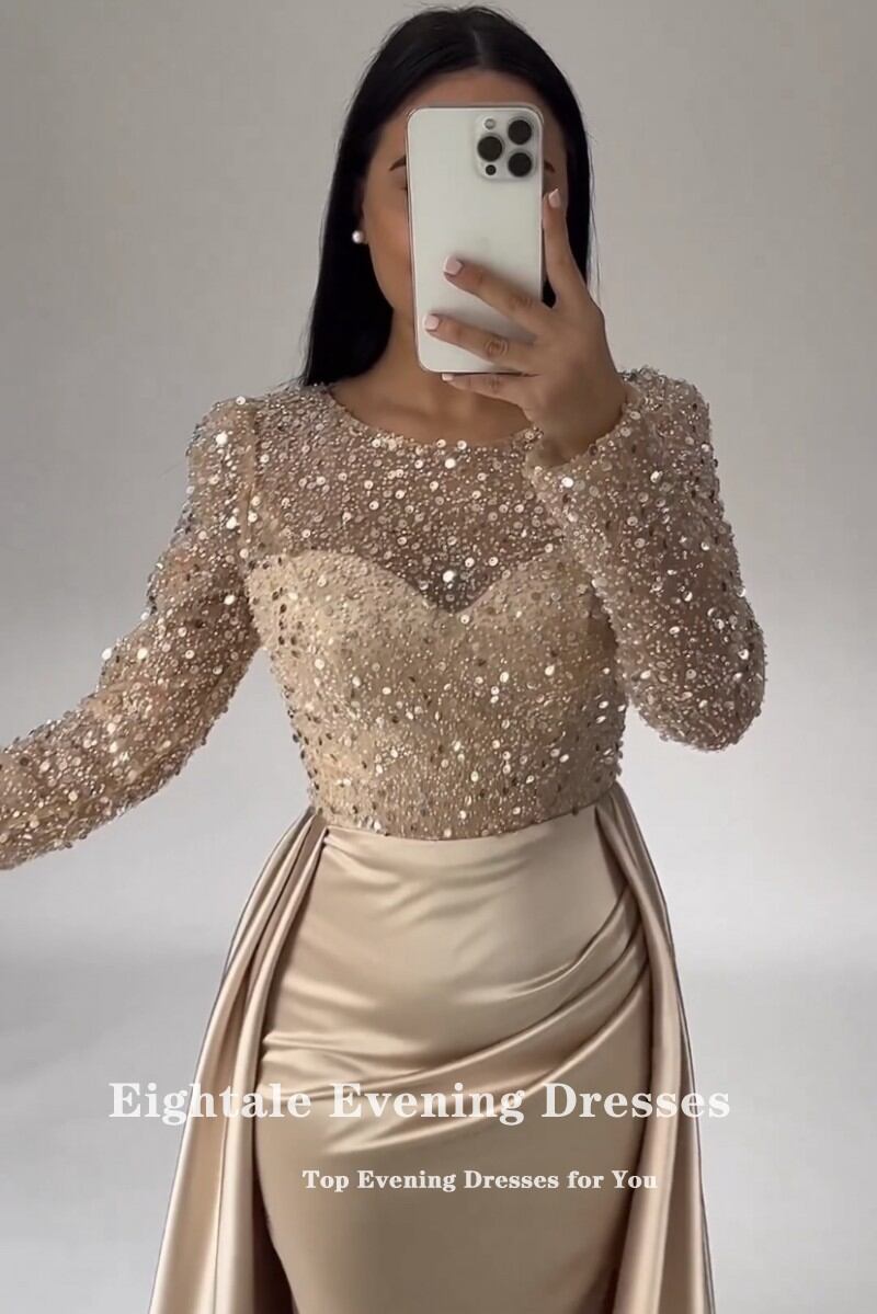 女性のためのイブニングドレス,エレガントな衣装,長袖,ラウンドネック,結婚披露宴のために