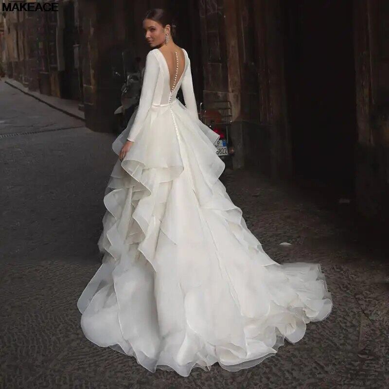 フリル付き長袖Vネックウェディングドレス,ロマンチックなドレス,ラージサイズ,ビーチ用