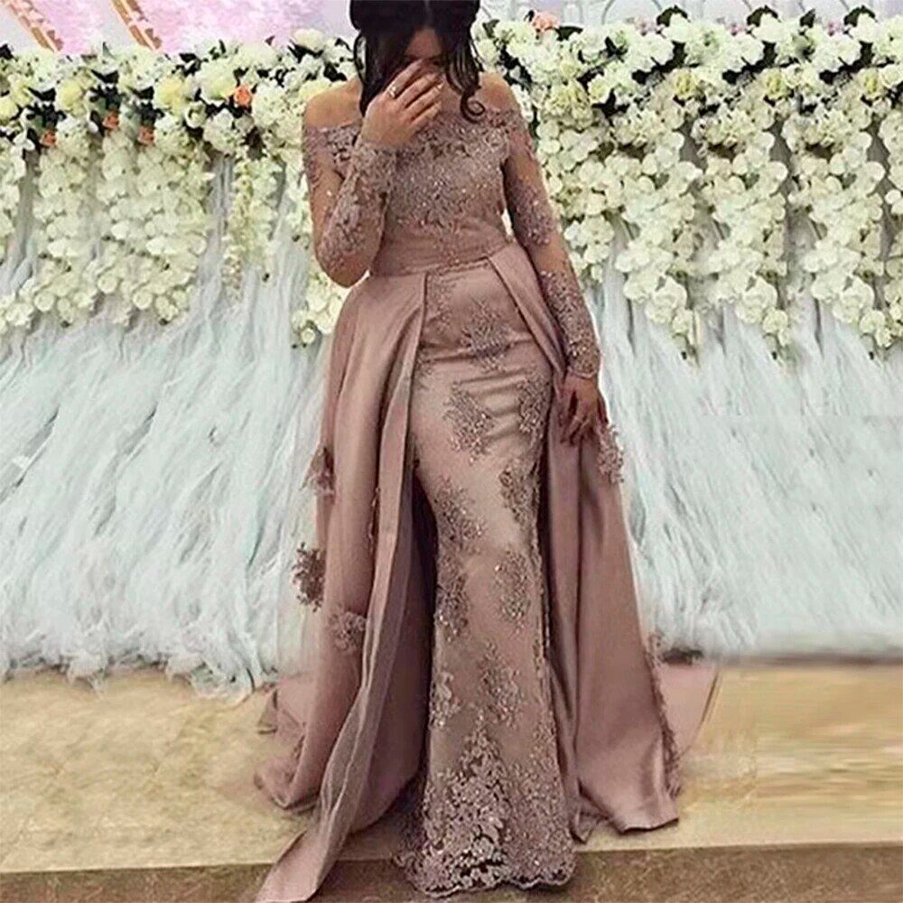 レースアップリケ付きマーメイドドレス,取り外し可能,裸の肩,結婚式のパーティー,フォーマルなイブニングドレス,花嫁の母