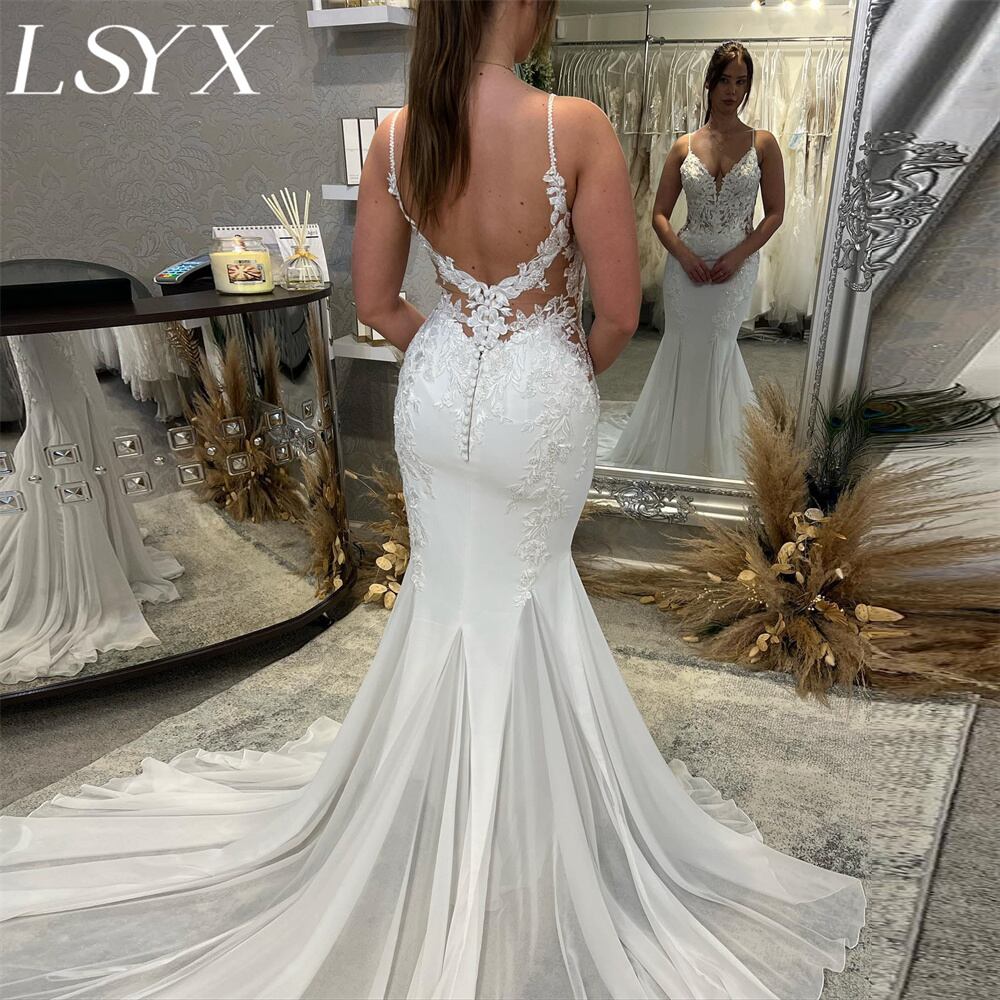 Lsyx-シルクシフォンウェディングドレス,ノースリーブ,Vネック,シングル,スパゲッティストラップ,コート,トレーニング,バック,2024
