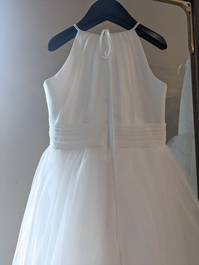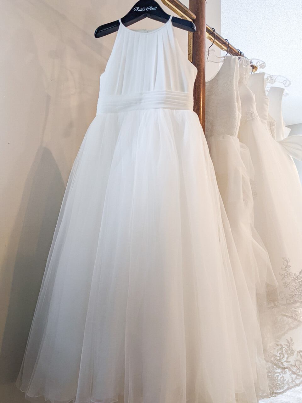 Babyonline-透明な聖体のドレス、シンプルなアイボリーチュール、シフォンホルター、ミニブライドメイドボールガウン、結婚式のゲストパーティー