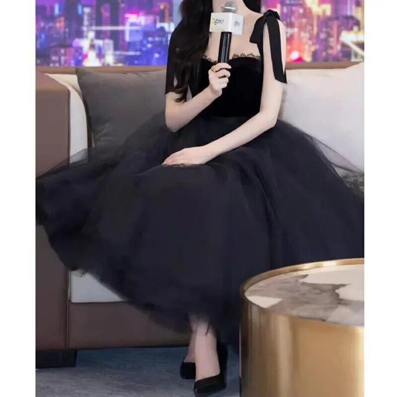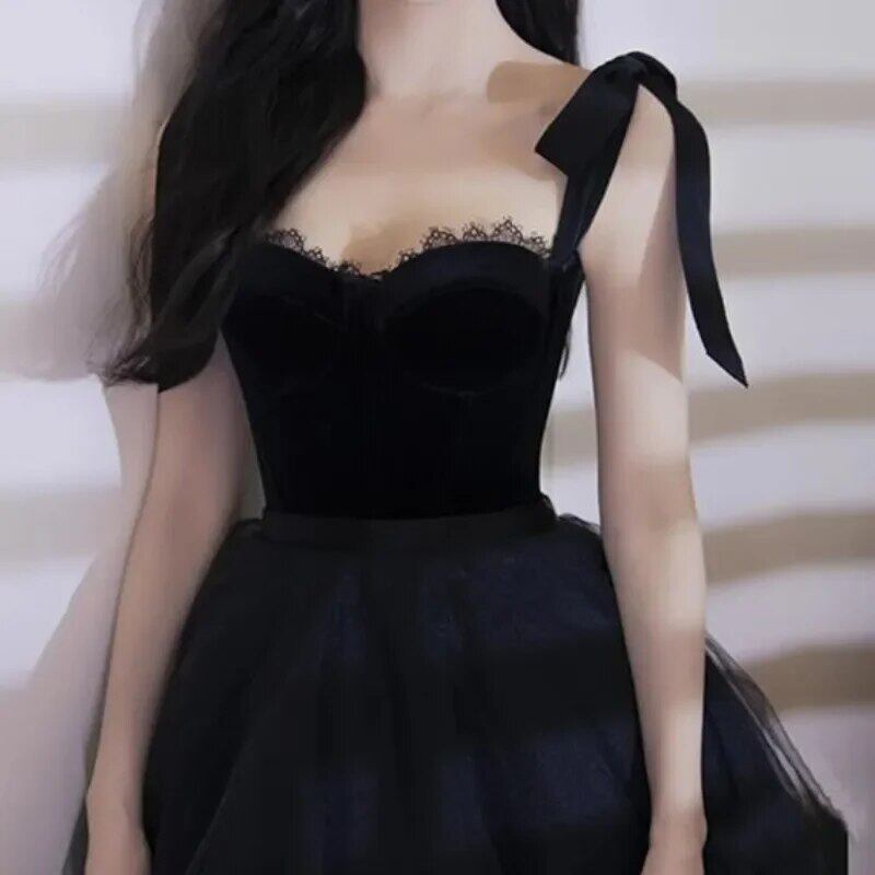 ストラップレス単色イブニングドレス、スクエアカラー、スプリットレース、シンプルな気質、エレガントな結婚披露宴ドレス