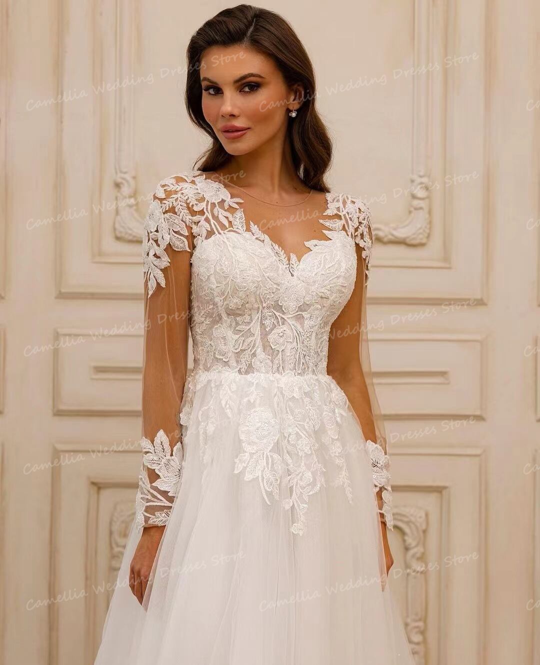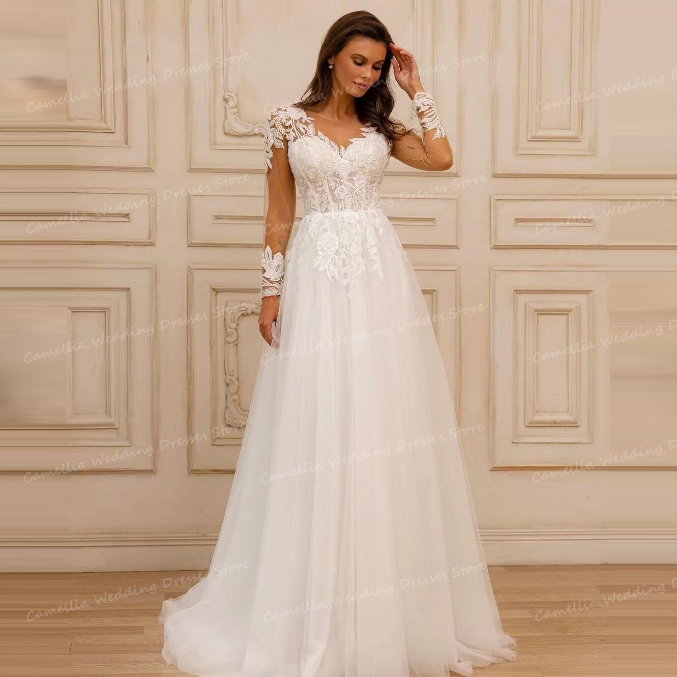 ヴィンテージウェディングドレス,セクシー,ライン,長袖,アップリケ,ブライダルガウン,ふわふわチュール,ピンセット,ホルターレスドレス,2024