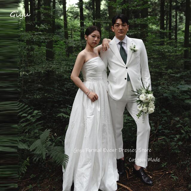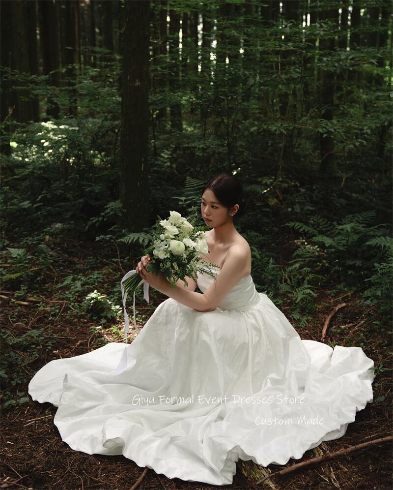 Giyu-ストラップレスブライダルガウン,シンプルなライン,タフタ,ウェディングドレス,コルセット,床の長さ,韓国の写真撮影,プラスサイズ