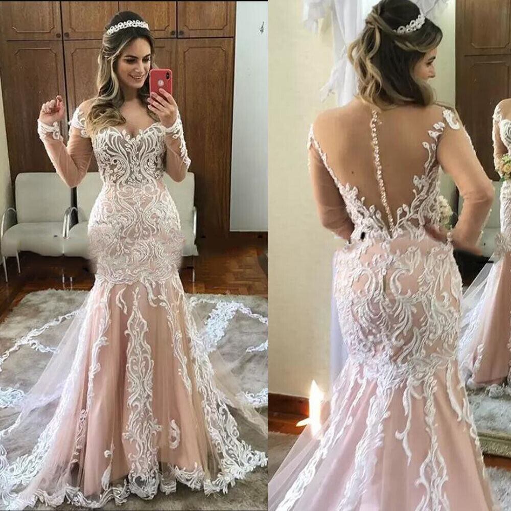 プリンセスメイドのウェディングドレス,ラウンドカラー,長袖,アップリケボタン,アイボリー,シャンパン