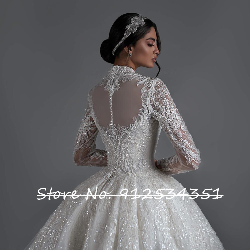 Hchzeitskleid-ヴィンテージのウェディングドレス,長袖,ハイカラー,スパンコール,アップリケ,イブニングドレス