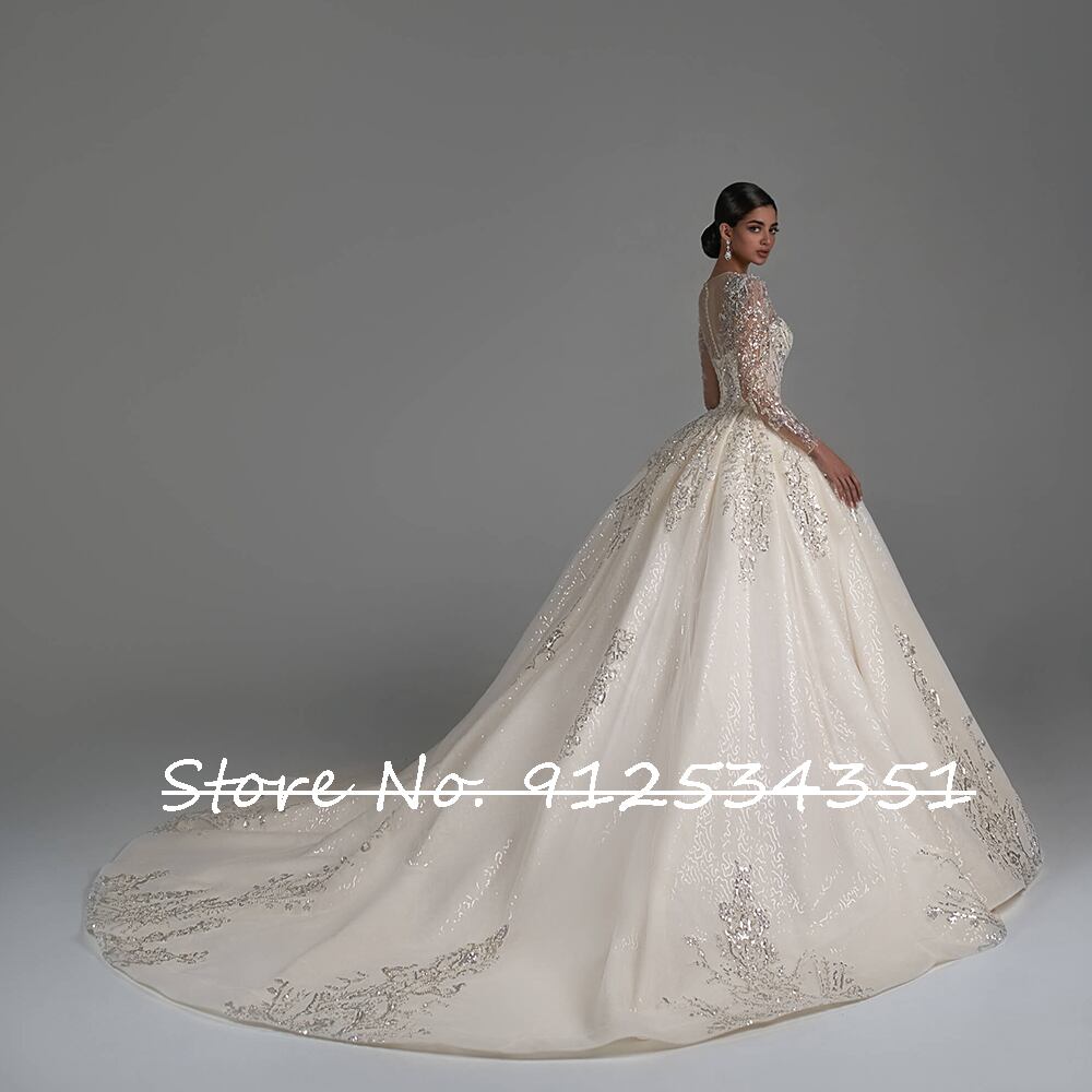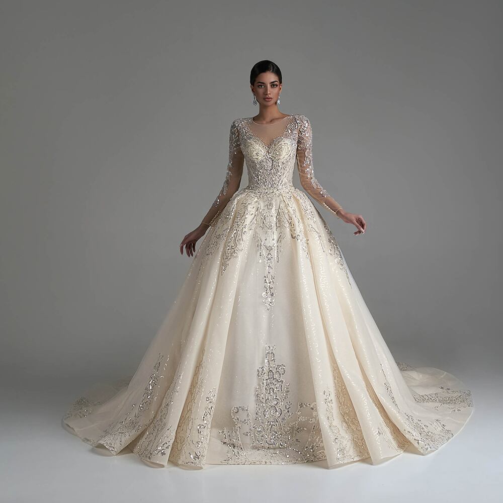 Trouwjurk-結婚式用スパンコールボールガウン、長袖、グリッターボールガウン、ヴィンテージドレス、錯覚、高級、ビーズ、ラグジュアリー