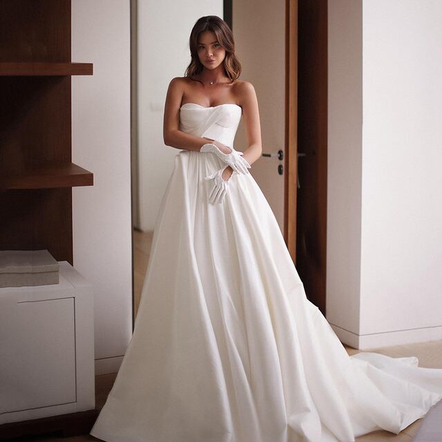 リーツリー-ラインウェディングドレス、ロングサテンガウン、自由奔放に生きるブライダルドレス、カスタムサイズ、エレガントなプリンセスドレス、ビーチとプロ
