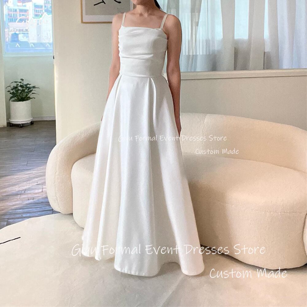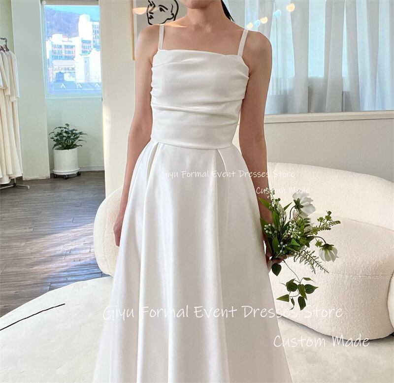 Giyu-シンプルサテンウェディングドレス,スパゲッティストラップ,地面の長さ,韓国の写真撮影,コルセットバック,プラスサイズ