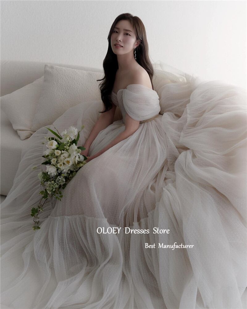 Oloey-チュールの結婚式のドレス,点線のドレス,セクシーなブライダルガウン,エレガントな写真の衣装,電車