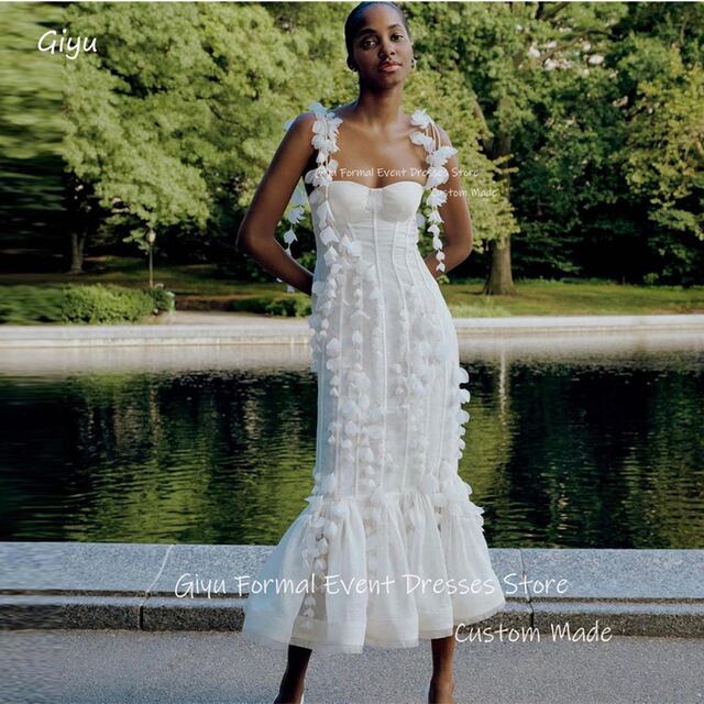 Giyu-エレガントな人魚のウェディングドレス,3D花のストラップ,ハート型のティーレングス,ブライダルガウン,アクセサリー
